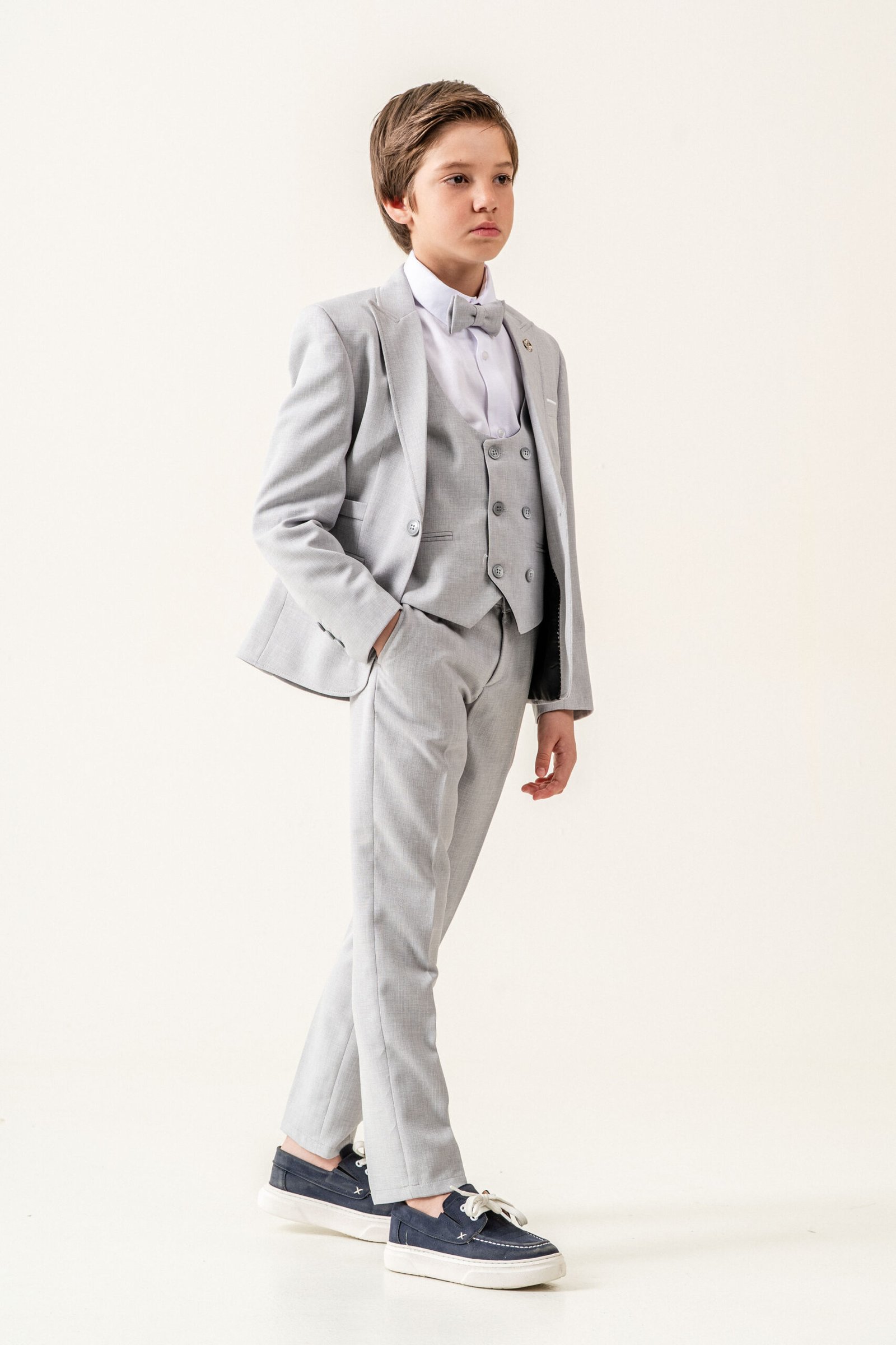This elegant 5-piece formal suit set is designed for young gentlemen who appreciate style and comfort. Perfect for weddings, ceremonies, parties, and special occasions.