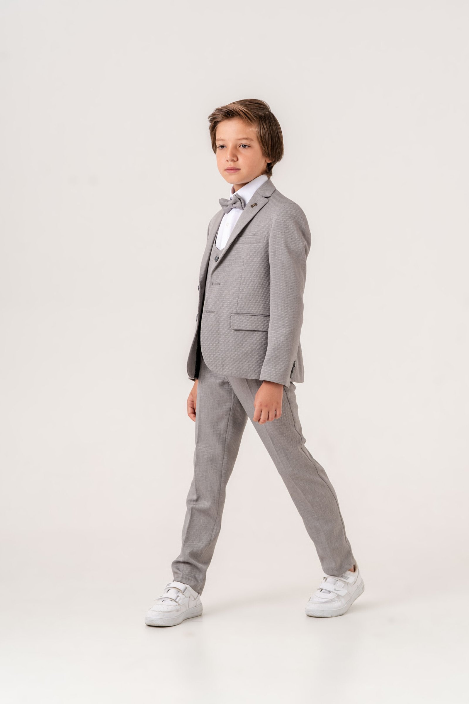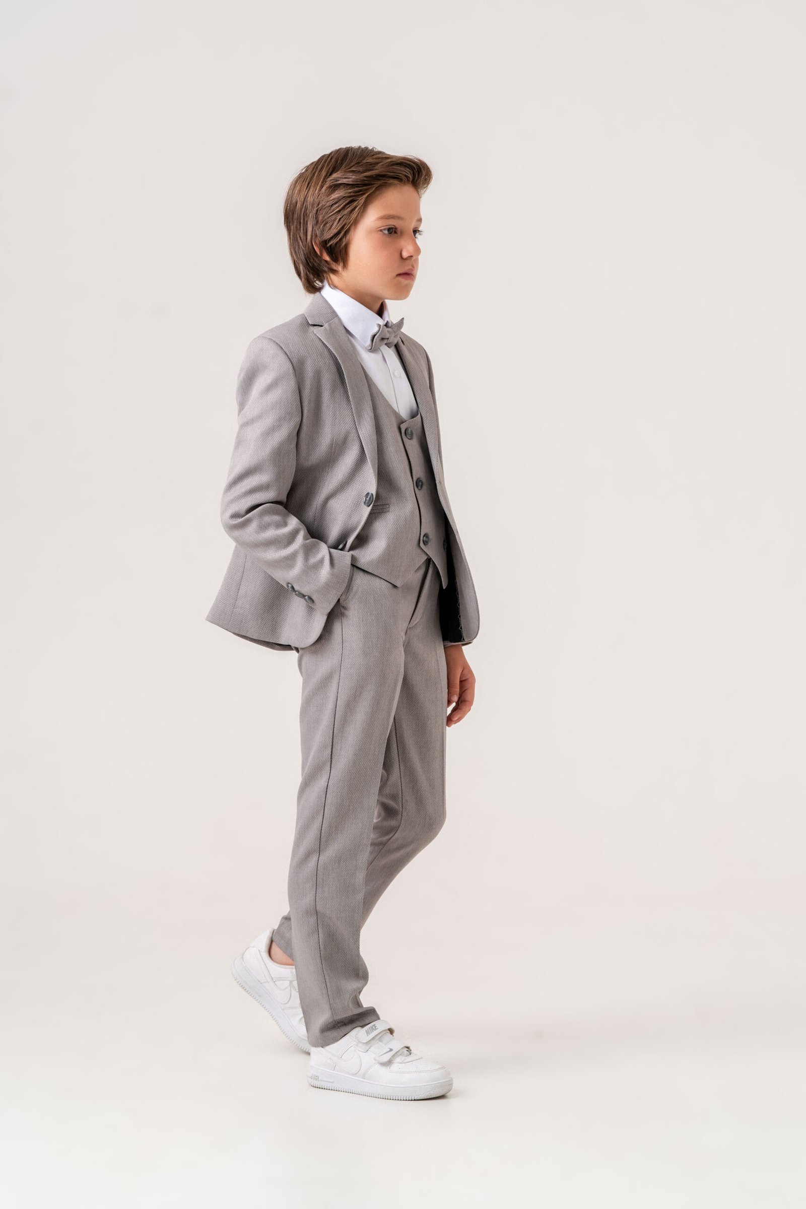 This elegant 5-piece formal suit set is designed for young gentlemen who appreciate style and comfort. Perfect for weddings, ceremonies, parties, and special occasions.